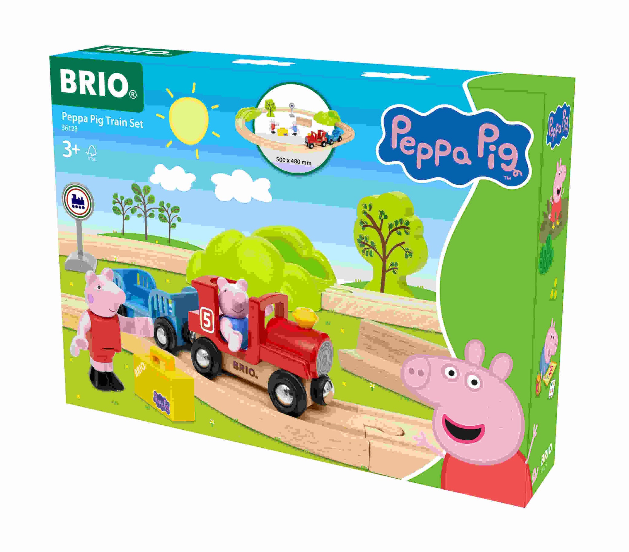 The BRIO Peppa Pig Train Set brings beloved characters to life with 18 pieces of wooden railway fun.