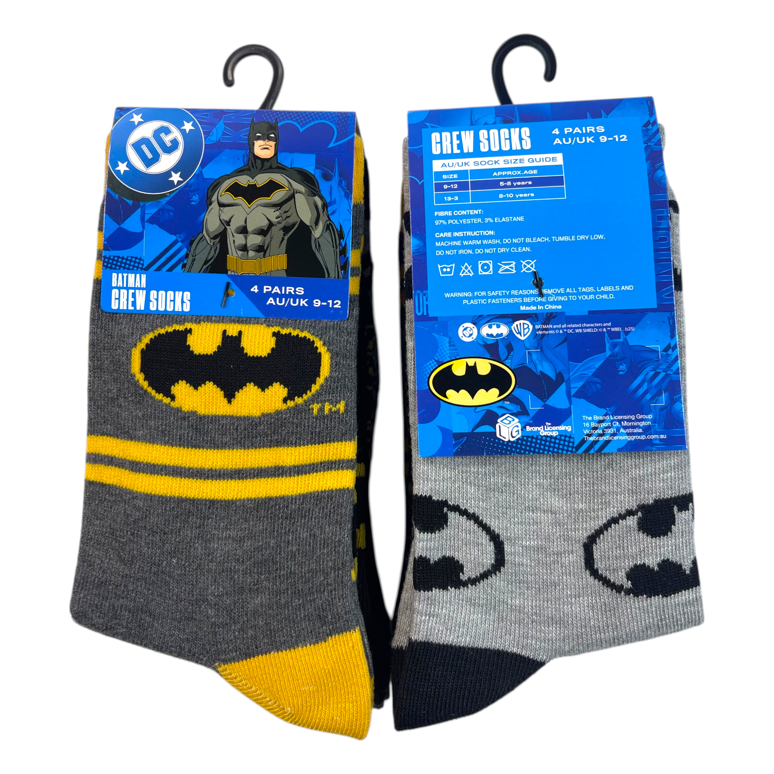 DC Comic - Batman 4 Crew Pack Socks Shoe Size 9 - 12