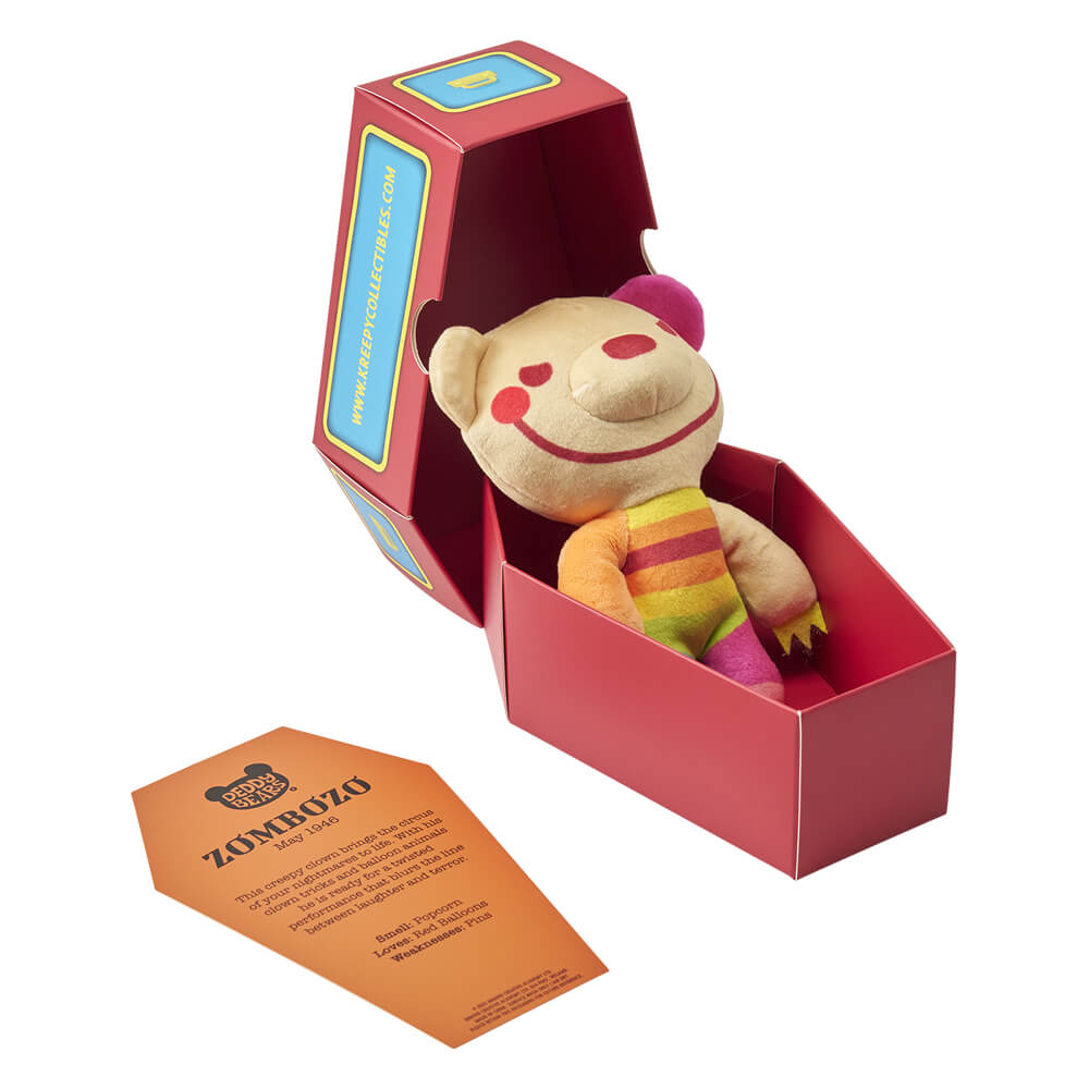 Deddy Bears are impulsive, fun and super scary! These 14cm Deddy Bears soft toys come presented in coloured Deddy Bear coffins, complete with a death certificate and character bio outlining the date of death, each bear's distinct smell, likes and weaknesses. There are four characters in this Halloween assortment. Characters include Mystique, Smirkkitty, Grin Reaper and Zombozo.