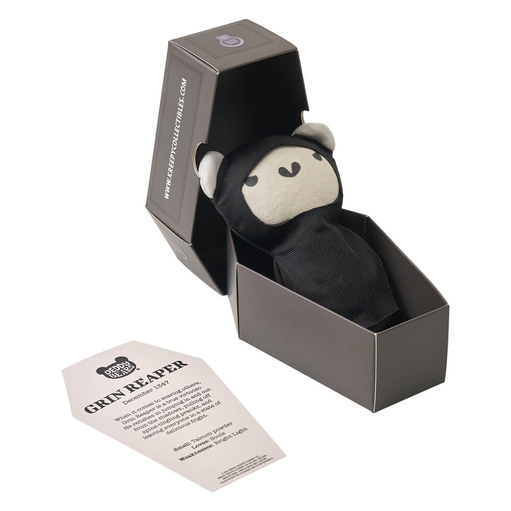 14cm Deddy Bears plush comes packaged in a coffin with a death certificate