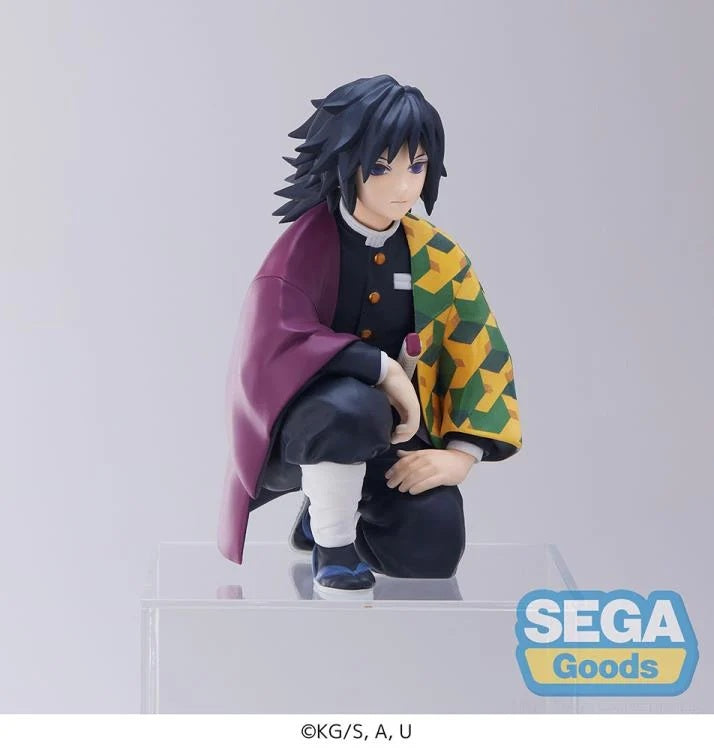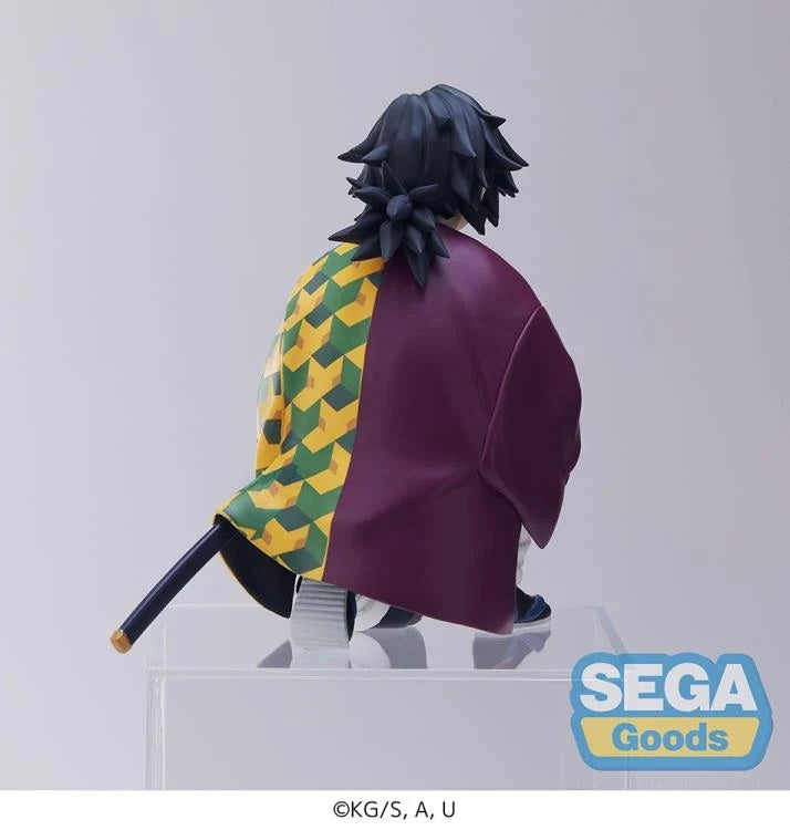 Giyu Tomioka once again joins the Premium Perching Figure line from Sega! Sitting nearly 5 inches tall, Giyu Tomioka rests his arm on his knee, wearing his signature Demon Slayer uniform.