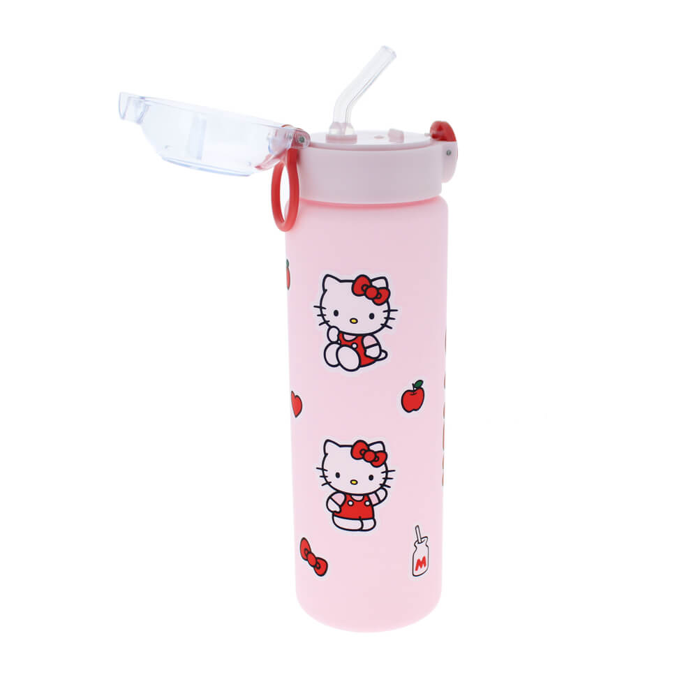 This sweet and stylish plastic water bottle showcases iconic Hello Kitty motifs with this pink water bottle with secure clasp lid. This is the must-have summer accessory to keep you hydrated in style. Suitable for cold water only. Holds 670ml.