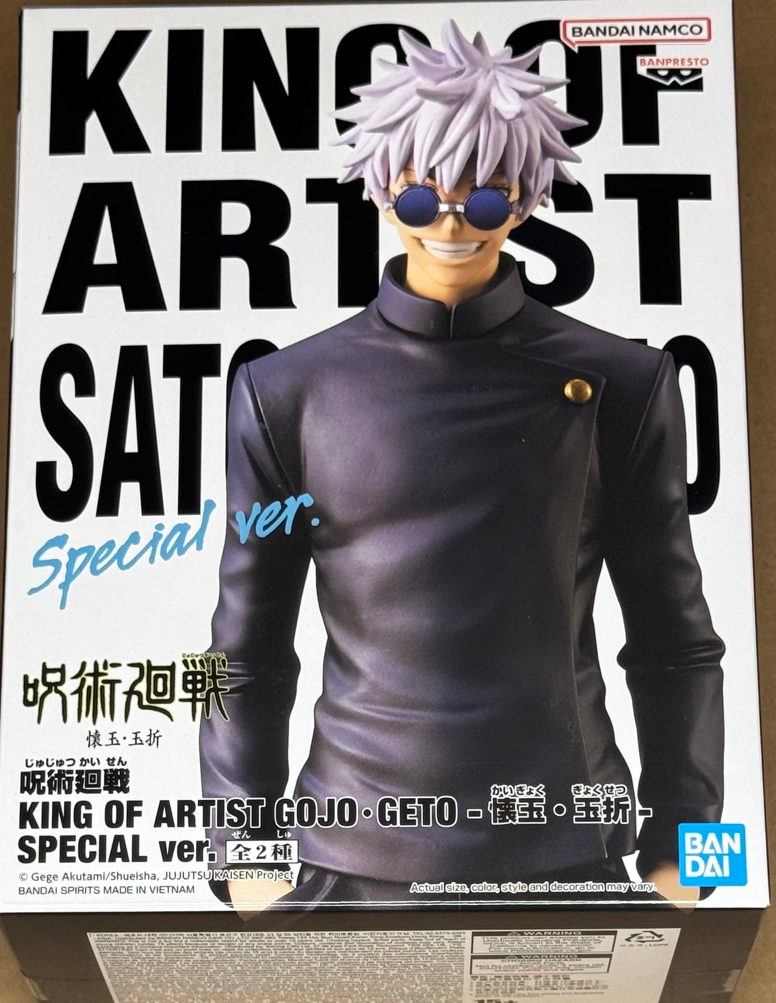 From the smash hit anime series Jujutsu Kaisen comes a new entry in the King of Artist series by Banpresto: Satoru Gojo! He is displayed in his memorable attire from the series while standing over 8 inches tall. Order your figure today and add to your Jujutsu Kaisen collection!