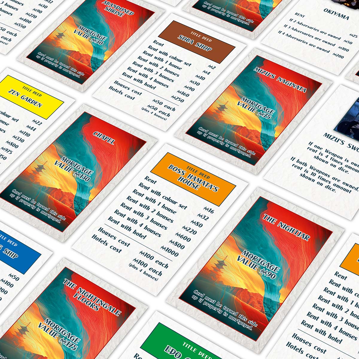 BUILD YOUR BLUE EYE SAMURAI EMPIRE: Buy up colour sets and use your BLUE EYE SAMURAI themed Monopoly money to expand your empire by building houses and hotels
