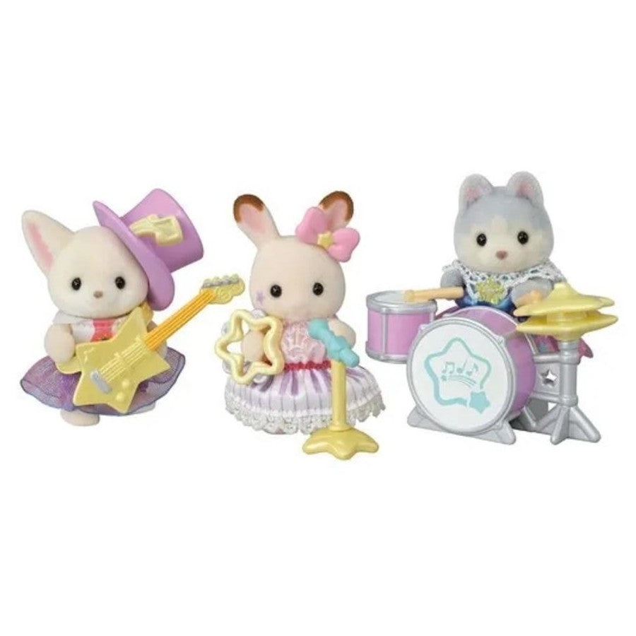 A trio of tiny stars takes the stage in this adorable set featuring the Chocolate Rabbit baby, Fennec Fox baby, and Husky baby, each dressed in shimmering, star‑themed outfits. With instruments including a drum, guitar, and tambourine, these little performers are ready to put on a dazzling mini‑concert.