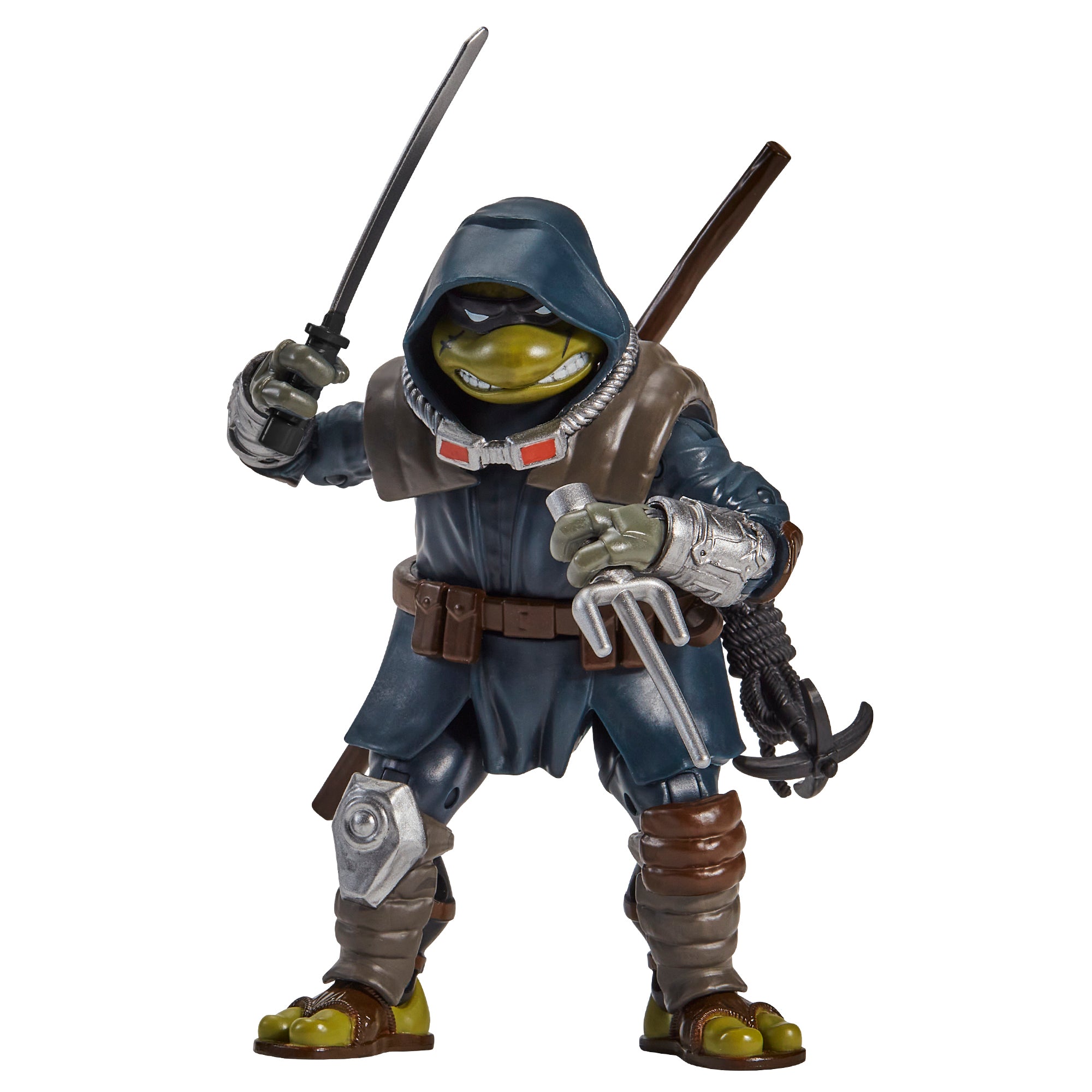 This meticulously detailed, authentically decorated, and highly poseable figure stands 4.5" tall and features 14 points of articulation to recreate your favorite scenes. Don's bo staff, Mikey's nunchaku, Raph's twin sai, and both of Leo's katanas, one with a broken blade, are included as accessories, along with a grappling hook and rope that fasten to his accessory belt.