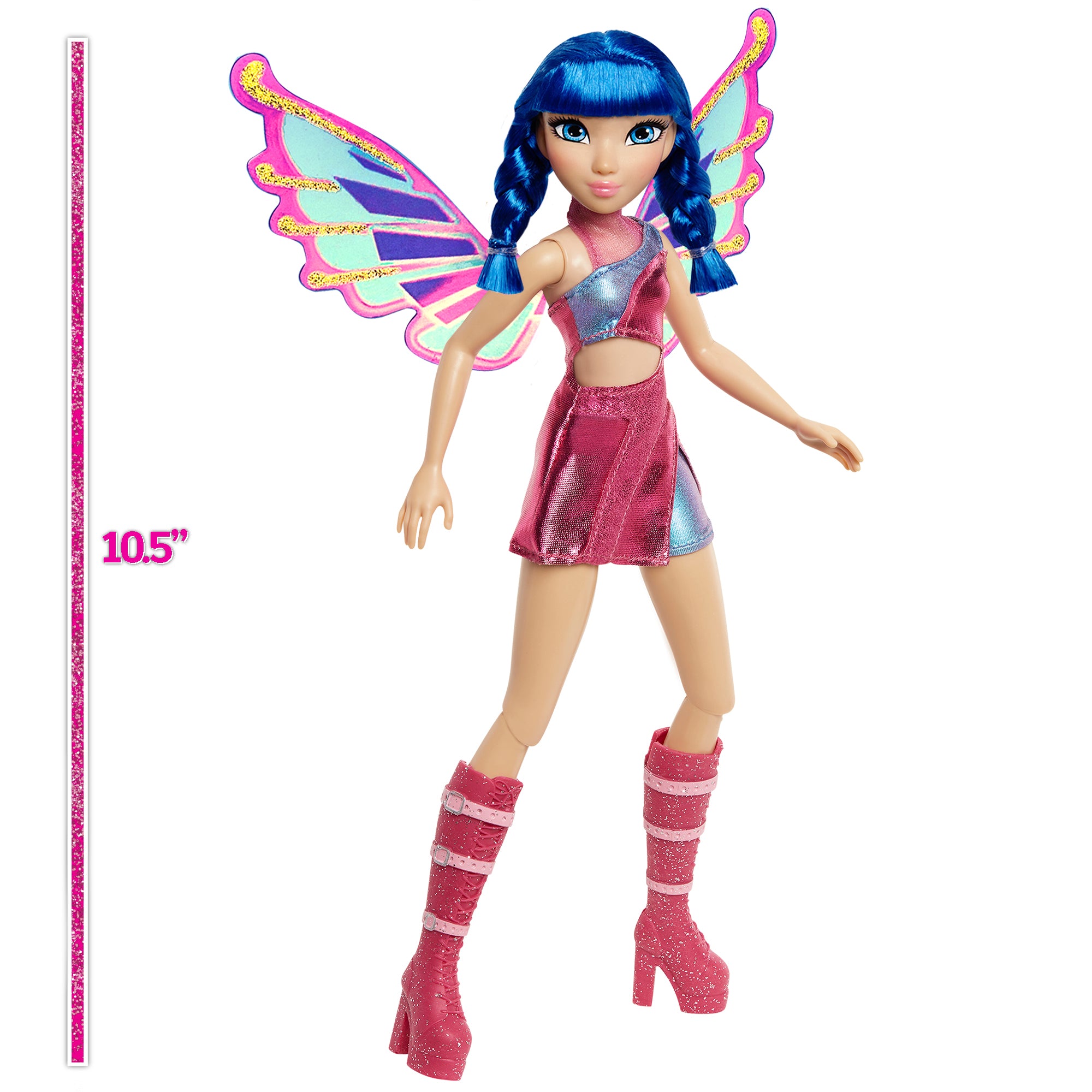 DETAILED DESIGN: Fairy Musa fashion doll is modelled to match her character from the Winx Club show with realistic facial features and expressions, and her fairy wings.